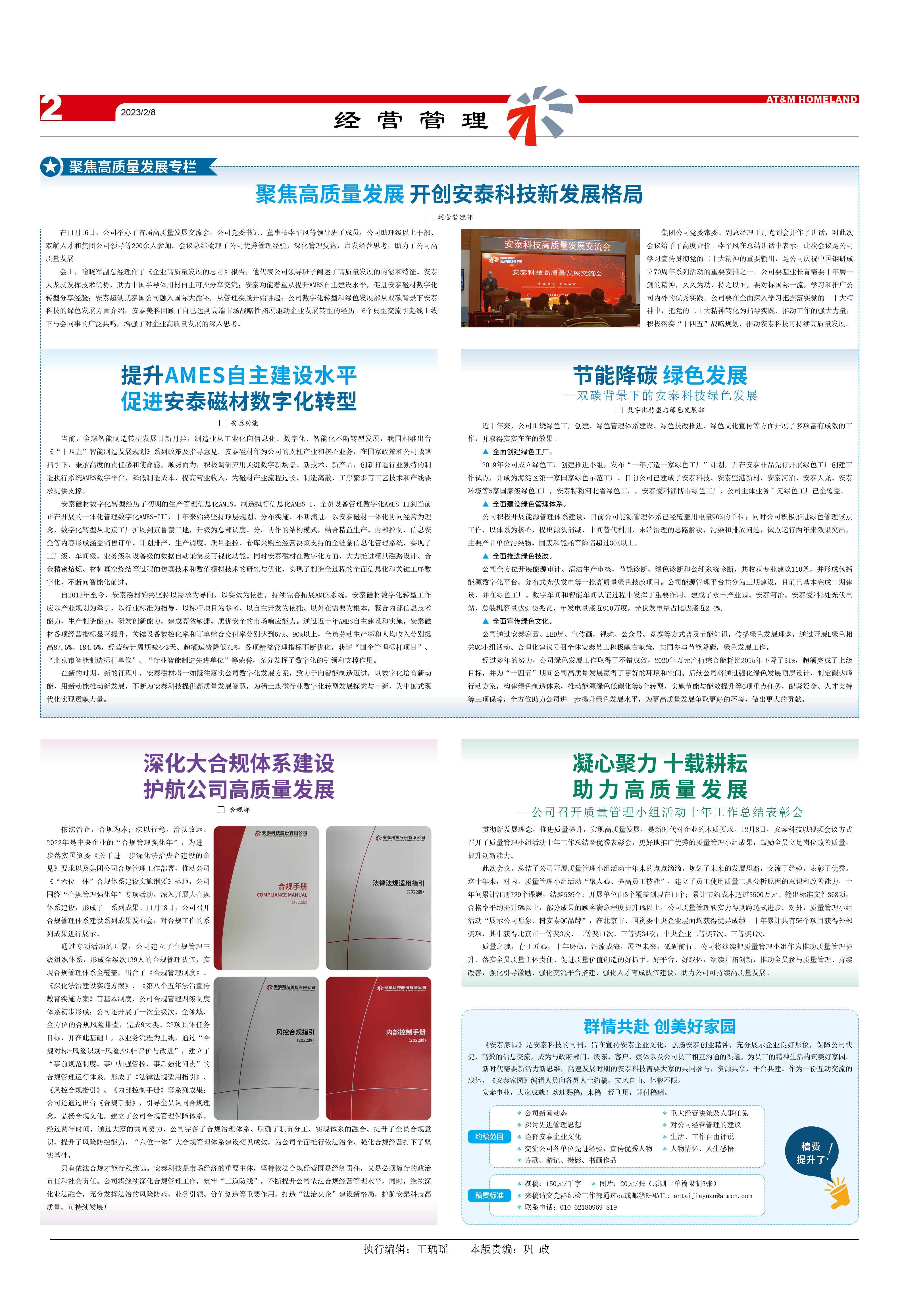 會上,喻曉軍副總經理作了《企業高質量發展的思考》報告,他代表公司領導班子闡述了高質量發展的內涵和特征。安泰天龍就發揮技術優勢,助力中國半導體用材自主可控分享交流;安泰功能著重從提升AMES自主建設水平,促進安泰磁材數字化轉型分享經驗;安泰超硬就泰國公司融入國際大循環,從管理實踐開始講起;公司數字化轉型和綠色發展部從雙碳背景下安泰科技的綠色發展方面介紹;安泰美科回顧了自己達到高端市場戰略性拓展驅動企業發展轉型的經歷。6個典型交流引起線上線下與會同事的廣泛共鳴,增強了對企業高質量發展的深入思考。